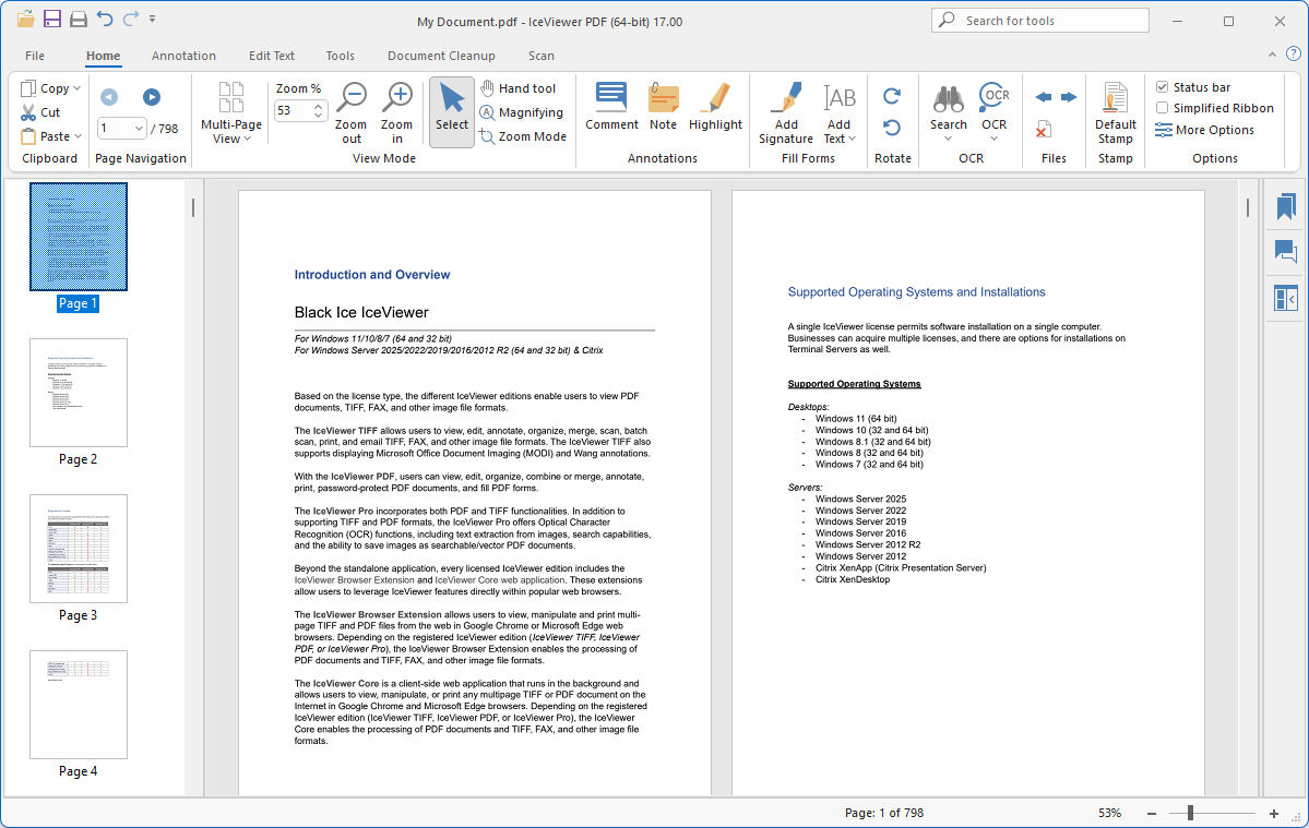 The IceViewer PDF offers a variety of view modes including multipage, fit-to-window, fit-to-width views, and more...