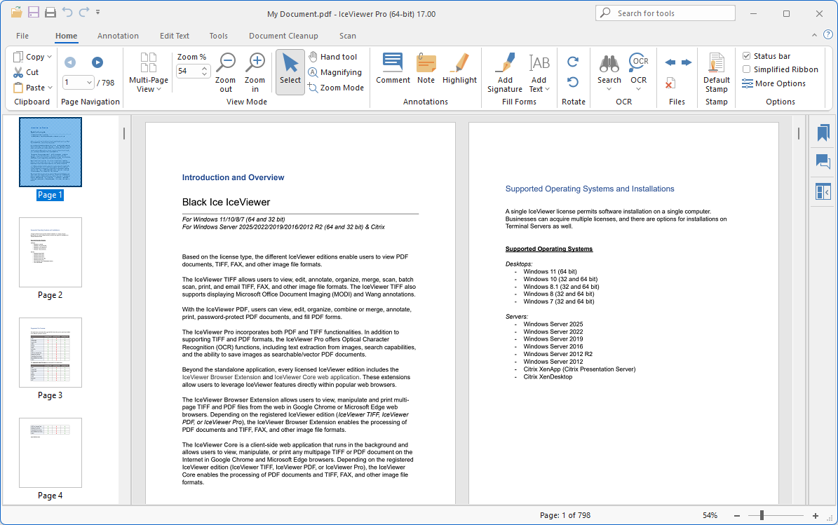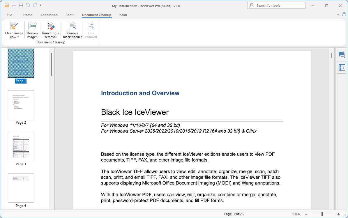 The IceViewer Pro offers a variety of view modes including multipage, fit-to-window, fit-to-width views, and more...