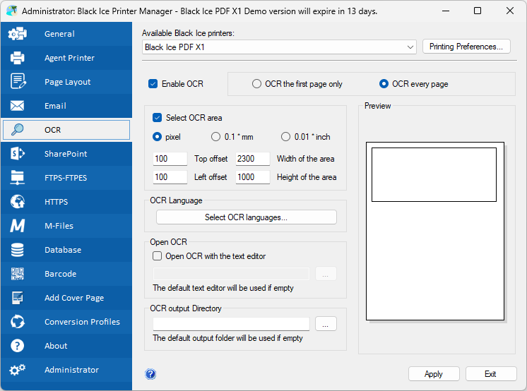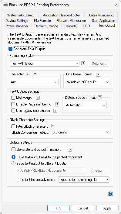 Black Ice PDF X1 Printer Driver is capable of converting scanned documents, such as Fax, TIFF, DICOM, JPEG into an editable text file by using Optical Character Recognition.