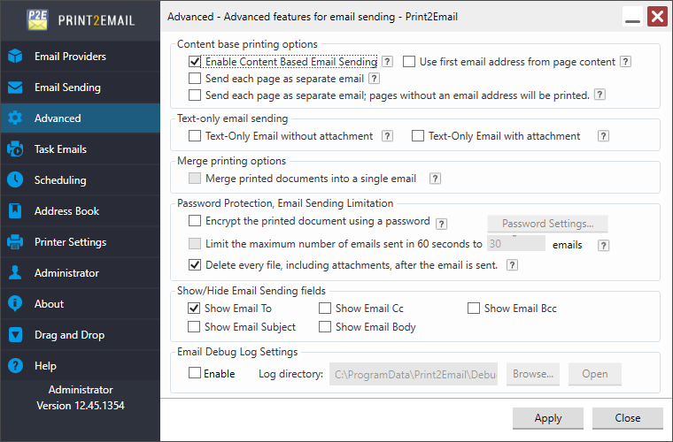 Print2Email includes Content Base Email Sending feature to extract specific information from the printed documents, (for example email subject) and Print2Email will send the email based on the extracted information.