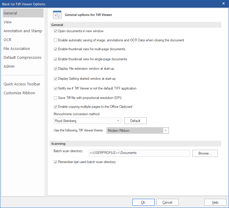 - When this option is 1, the Tiff Viewer will always remember and use the previously used batch scan directory.