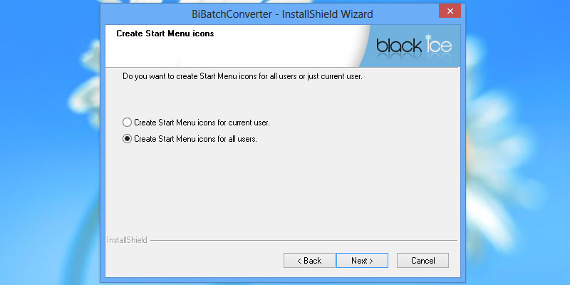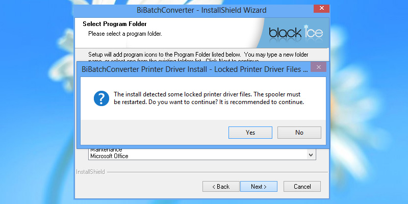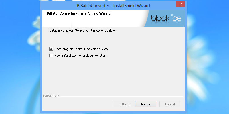 To begin installation, double click on the downloaded BiBatchConverter.The following screen will be displayed. Click the 'Next' button to continue.Review the license agreement, and select 'I accept the terms of the license agreement' radio button. Press 'Next' to continue.The next screen will present an option of installing BiBatchConverter for all users or just the current user. Press 'Next' to continue.Select the installation directory of the BiBatchConverter or use the default destination folder. Press 'Next' to continue.Select the output directory of the printed documents. Press 'Next' to continue.Specify the desired name for BiBatchConverter to appear under Start > Programs or use the default settings. Press 'Next' to continue.The following window appears, if the installer detect some locked files. Press 'Yes' to continue.The InstallShield Wizard will install the Black Ice BiBatchConverter.The following dialog will appear, and the user can select to 'Place program shortcut icon on desktop,' and 'View BiBatchConverter documentation.' Press the 'Next' button to continue.The installations is complete. Press the 'Finish' button to continue.On the following window, click on Yes to activate the BiBatchConverter with a valid serial number obtained during the purchase, or Click No and BiBatchConverter registers as Demo. BiBatchConverter Demo can be used for 15 days. A window will appear confirming that the BiBatchConverter Demo has successfully registered over the internet. Thank you for using Black Ice BiBatchConverter. Click here to see more tutorials.