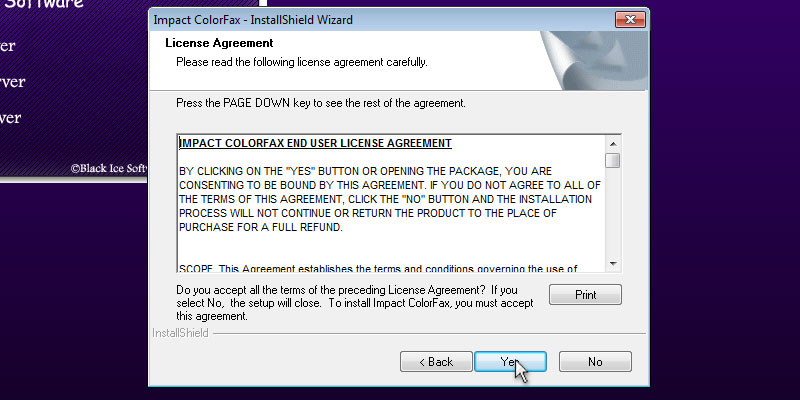 To begin installation, double click on the downloaded ColorFax.The following screen will be displayed. Click the 'Next' button to continue.Review the license agreement, and press 'Yes' button to continue.Select the installation directory of the ColorFax or use the destination folder. Press 'Next' to continue.Specify the desired name for ColorFax to appear under Start > Programs or use the default settings. Press 'Next' to continue.Enter the identification text (CSID). The CSID identifies your computer when you send a fax. The information you insert into the CSID field is entered into the header of the fax. You can enter anything you want; however a typical CSID is your name, company or fax number.The following dialog will appear, and the user can select to 'Place program shortcut icon on desktop.' Press the 'Next' button to continue.Press Finish to complete the installation.